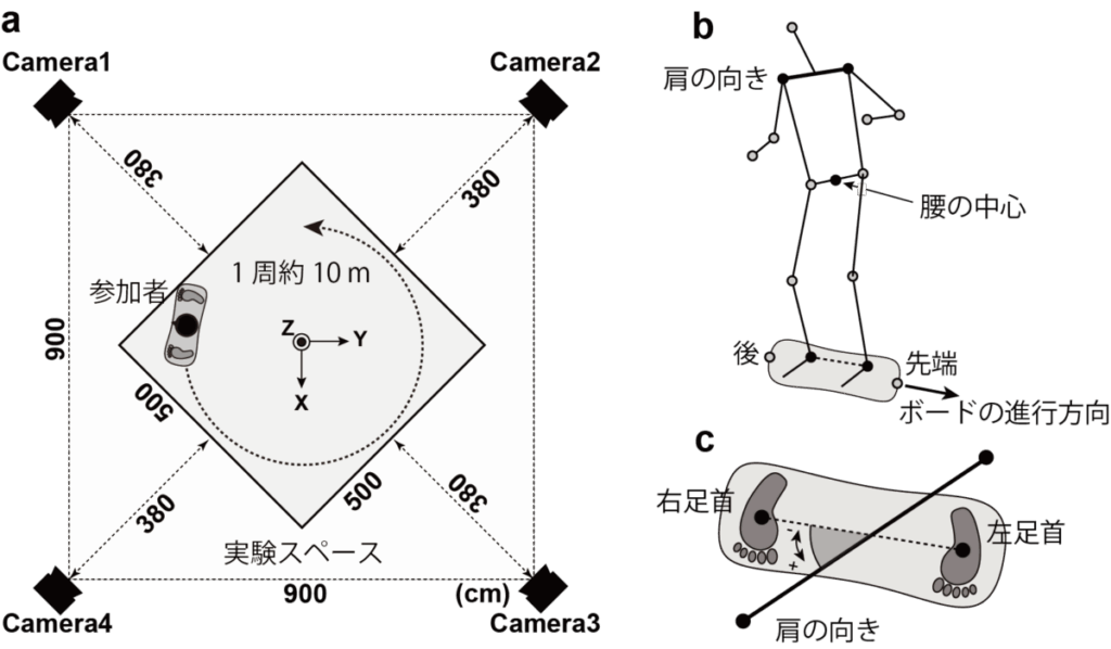 本研究ではスケートボードに似たキャスターボードに初めて乗れるようになる過程を分析し,最初に試した乗り方によって,その後の練習過程が異なることを明らかにしました. キャスターボードは,連結した二枚の板 …