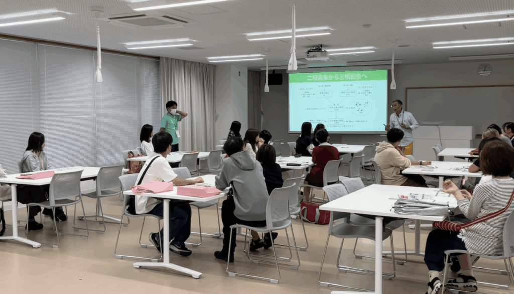 午後の半日プログラムにもかかわらず,高校生・保護者あわせて30名以上にご参加いただきました。3年生は「出願します」と頼もしい声もあり,1〜2年生ではすでに複数回参加してくれている方も。受付ではスタッフが顔を覚えており,「お久しぶり!」というやりとりが自然に生まれていました。